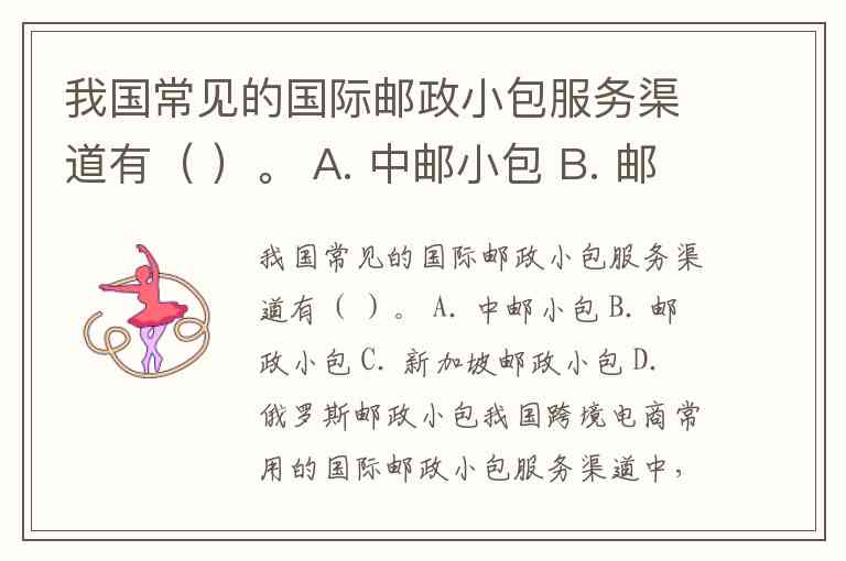 我国常见的国际邮政小包服务渠道有( )。 A. 中邮小包 B. 邮政小包 C. 新加坡邮政小包 D. 俄罗斯邮政小包