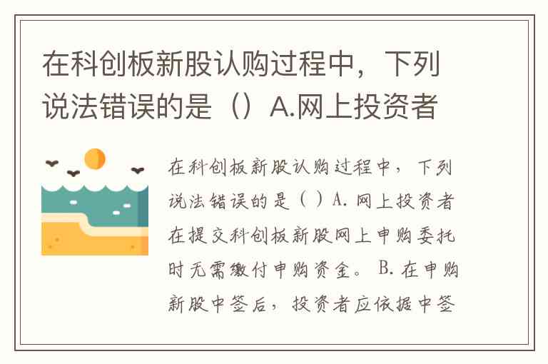 在科创板新股认购过程中,说法错误的是 D. 投资者认购资金不足的,不足部分仍可认为投资者新股认购成功。