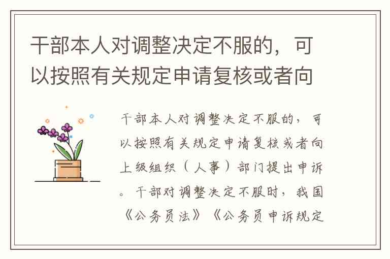 干部本人对调整决定不服的,可以按照有关规定申请复核或者向上级组织(人事)部门提出申诉。