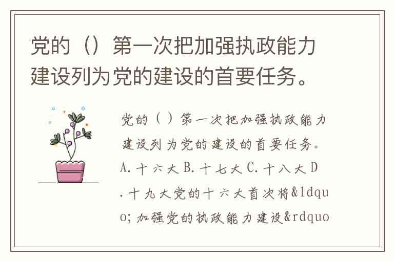 党的()第一次把加强执政能力建设列为党的建设的首要任务。A.十六大 B.十七大 C.十八大 D.十九大