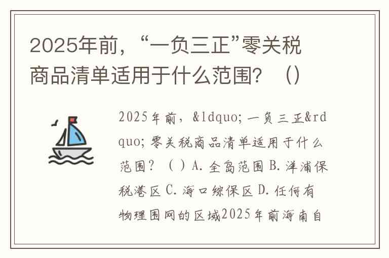 2025年前,“一负三正”零关税商品清单适用于什么范围?()A.全岛范围 B.洋浦保税港区 C.海口综保区 D.任何有物理围网的区域
