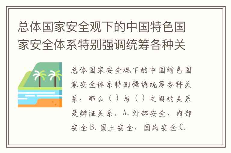 总体国家安全观下的中国特色国家安全体系特别强调统筹各种关系,那么()与()之间的关系是辩证关系。A.外部安全、内部安全 B.国土安全、国民安全 C.传统安全、非传统安全 D.安全、发展