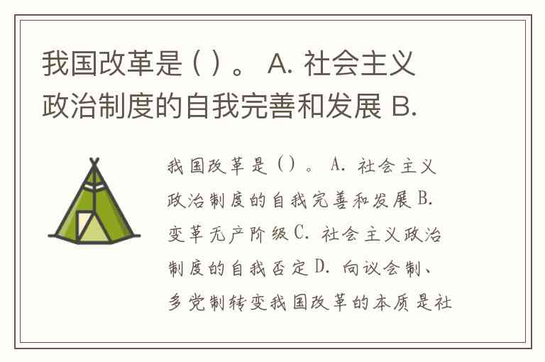我国改革是 ( ) 。 A. 社会主义政治制度的自我完善和发展 B. 变革无产阶级 C. 社会主义政治制度的自我否定 D. 向议会制、多党制转变
