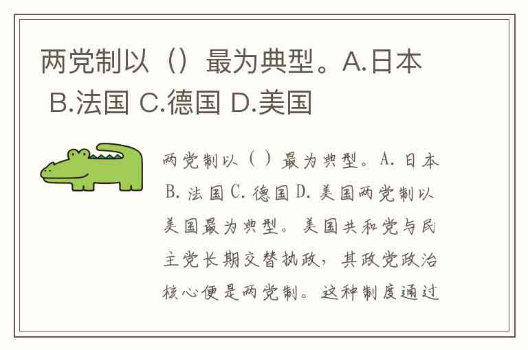 两党制以()最为典型。A.日本 B.法国 C.德国 D.美国