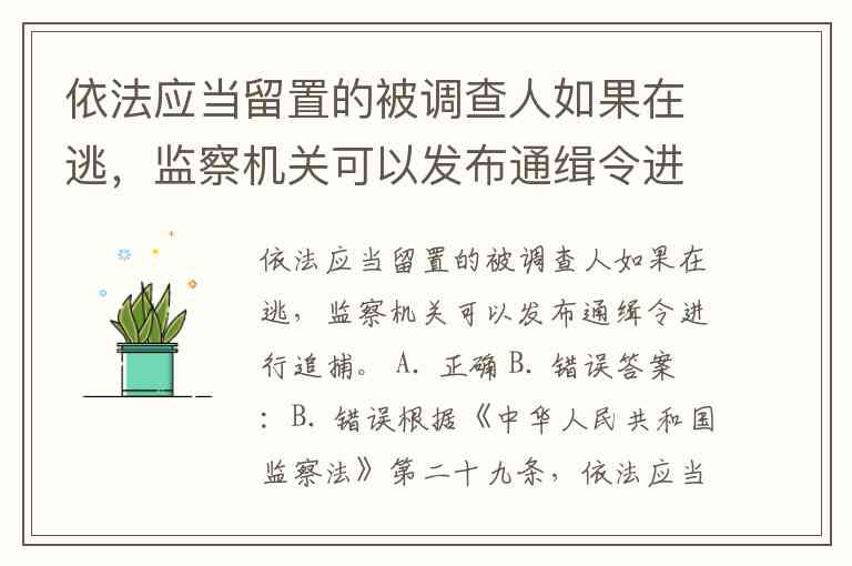 依法应当留置的被调查人如果在逃,监察机关可以发布通缉令进行追捕。 A. 正确 B. 错误