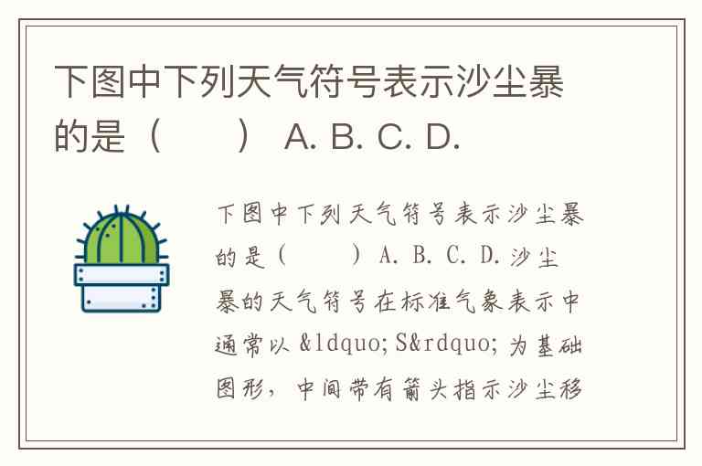 选择答案时,可优先观察选项中是否包含 “带箭头的S形”或“圆形内有倾斜线条” 的图案,这两种是最符合规范的沙尘暴符号表现形式。