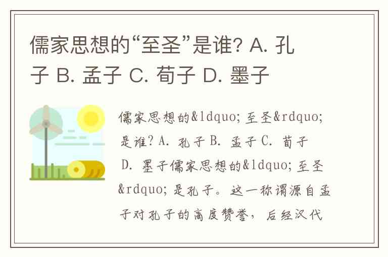 儒家思想的“至圣”是谁? A. 孔子 B. 孟子 C. 荀子 D. 墨子