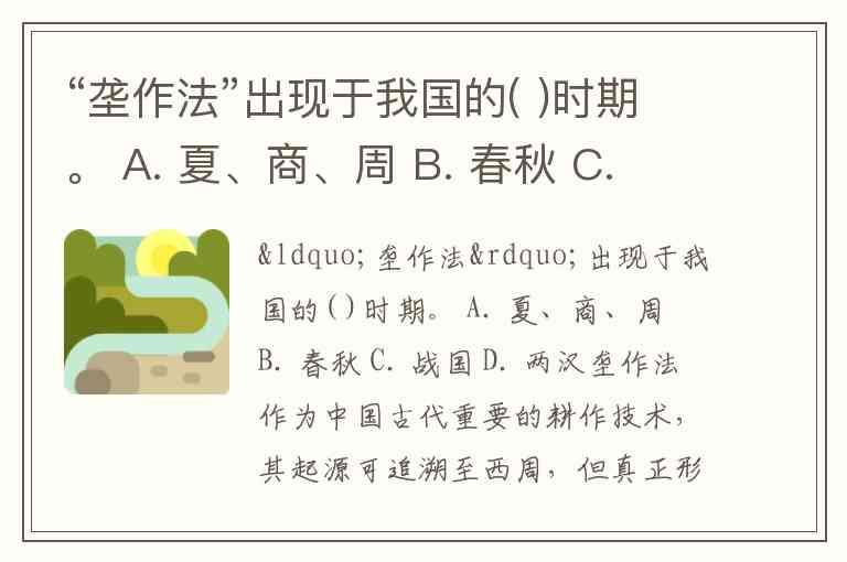 “垄作法”出现于我国的( )时期。 A. 夏、商、周 B. 春秋 C. 战国 D. 两汉