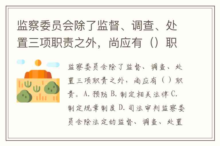 监察委员会除了监督、调查、处置三项职责之外,尚应有()职责。A.预防 B.制定相关法律 C.制定规章制度 D.司法审判