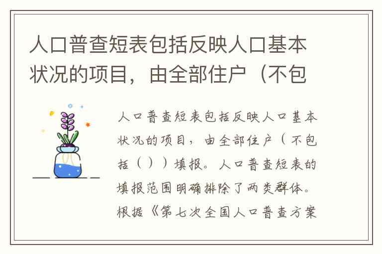 人口普查短表包括反映人口基本状况的项目,由全部住户(不包括())填报。