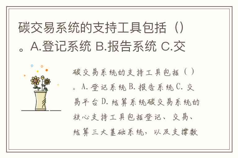 碳交易系统的支持工具包括()。A.登记系统 B.报告系统 C.交易平台 D.结算系统