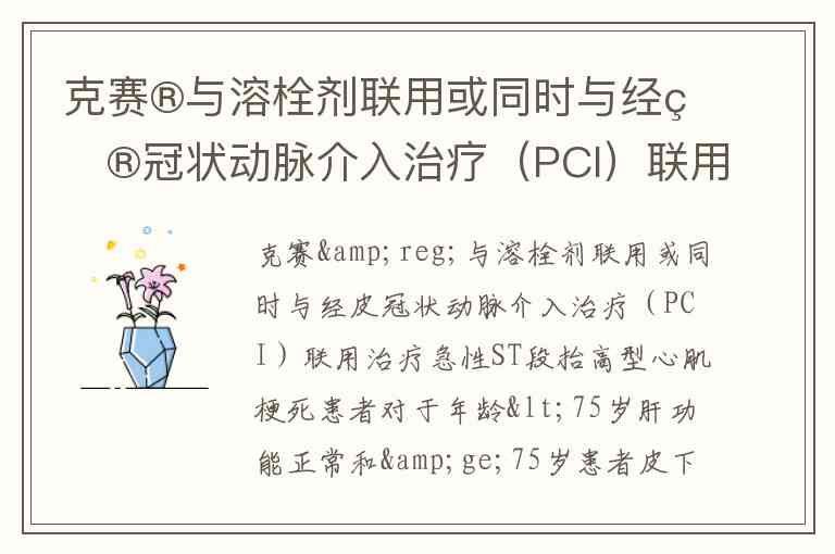 对于急性ST段抬高型心肌梗死患者,克赛(依诺肝素钠)与溶栓剂或PCI联用时的剂量需严格区分年龄组。年龄<75岁且肝功能正常者,采用“静脉负荷+皮下维持”方案:先静脉注射30mg,15分钟内皮下注射1mg/kg,之后每12小时皮下注射1mg/kg(最初两次剂量不超过100mg)。这一方案通过快速静脉负荷实现即刻抗凝,后续皮下给药维持稳定血药浓度,且对初始剂量设限可降低出血风险。