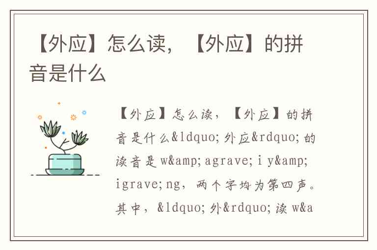“外应”的读音是 wài yìng,两个字均为第四声。其中,“外”读 wài(ㄨㄞˋ),“应”在这里读 yìng(ㄧㄥˋ),表示“感应、应验”的意思。