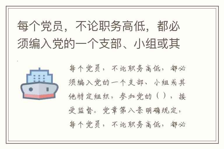 每个党员,不论职务高低,都必须编入党的一个支部、小组或其他特定组织,参加党的(),接受监督。