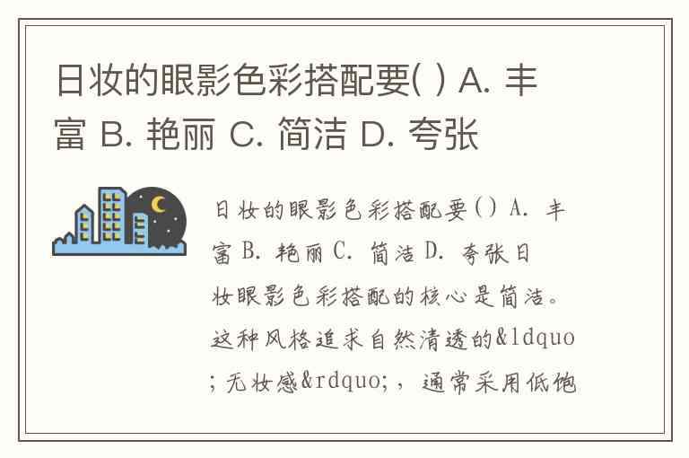 日妆的眼影色彩搭配要( ) A. 丰富 B. 艳丽 C. 简洁 D. 夸张