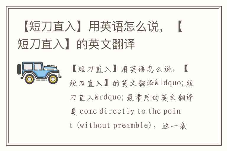 【短刀直入】用英语怎么说,【短刀直入】的英文翻译