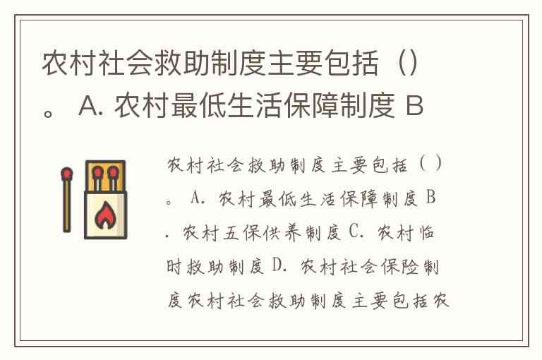 农村社会救助制度主要包括()。 A. 农村最低生活保障制度 B. 农村五保供养制度 C. 农村临时救助制度 D. 农村社会保险制度