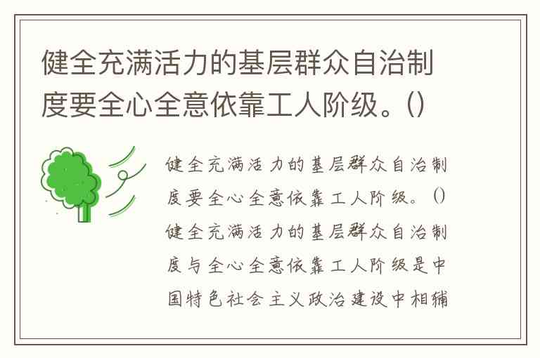 健全充满活力的基层群众自治制度要全心全意依靠工人阶级。()