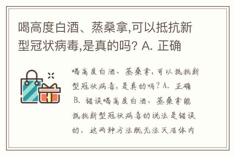 喝高度白酒、蒸桑拿,可以抵抗新型冠状病毒,是真的吗? A. 正确 B. 错误
