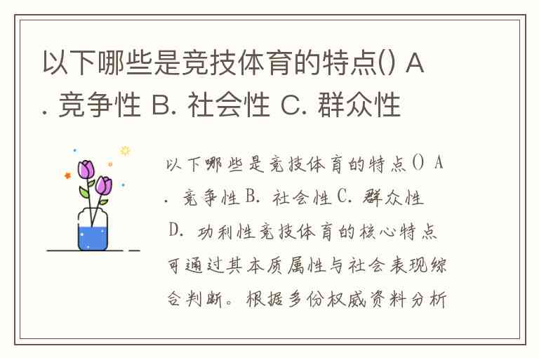 以下哪些是竞技体育的特点() A. 竞争性 B. 社会性 C. 群众性 D. 功利性