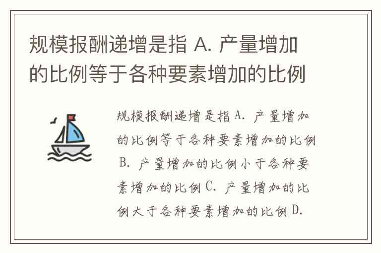 规模报酬递增是指 A. 产量增加的比例等于各种要素增加的比例 B. 产量增加的比例小于各种要素增加的比例 C. 产量增加的比例大于各种要素增加的比例 D. 不确定