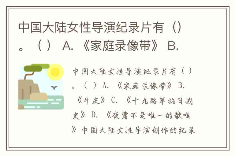 中国大陆女性导演纪录片有()。( ) A. 《家庭录像带》 B. 《牛皮》 C. 《十九路军抗日战史》 D. 《夜莺不是唯一的歌喉》