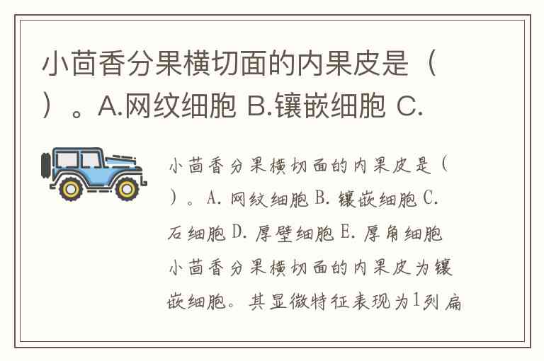 小茴香分果横切面的内果皮是()。A.网纹细胞 B.镶嵌细胞 C.石细胞 D.厚壁细胞 E.厚角细胞