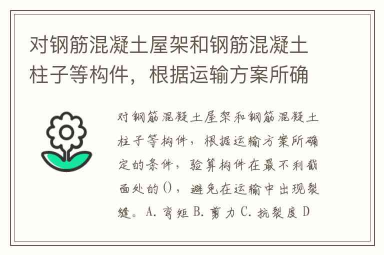 对钢筋混凝土屋架和钢筋混凝土柱子等构件,根据运输方案所确定的条件,验算构件在最不利截面处的(),避免在运输中出现裂缝。A.弯矩 B.剪力 C.抗裂度 D.抗扭矩