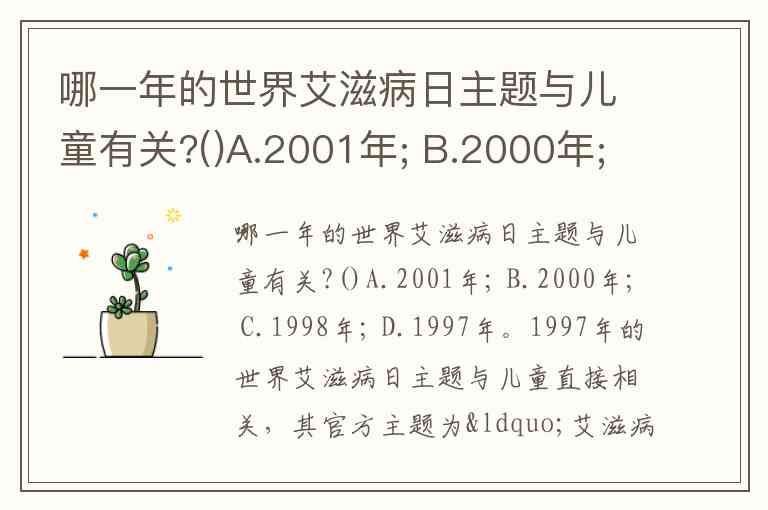 哪一年的世界艾滋病日主题与儿童有关?()A.2001年; B.2000年; C.1998年; D.1997年。