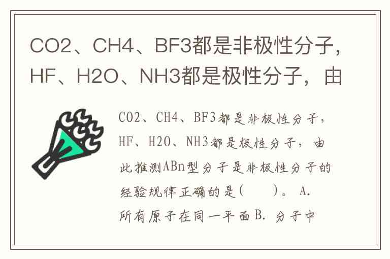 CO2、CH4、BF3都是非极性分子,HF、H2O、NH3都是极性分子,由此推测ABn型分子是非极性分子的经验规律正确的是( )。 A. 所有原子在同一平面 B. 分子中每个键的键长应相等 C. 在ABn中A原子没有孤对电子 D. A的相对原子质量小于B