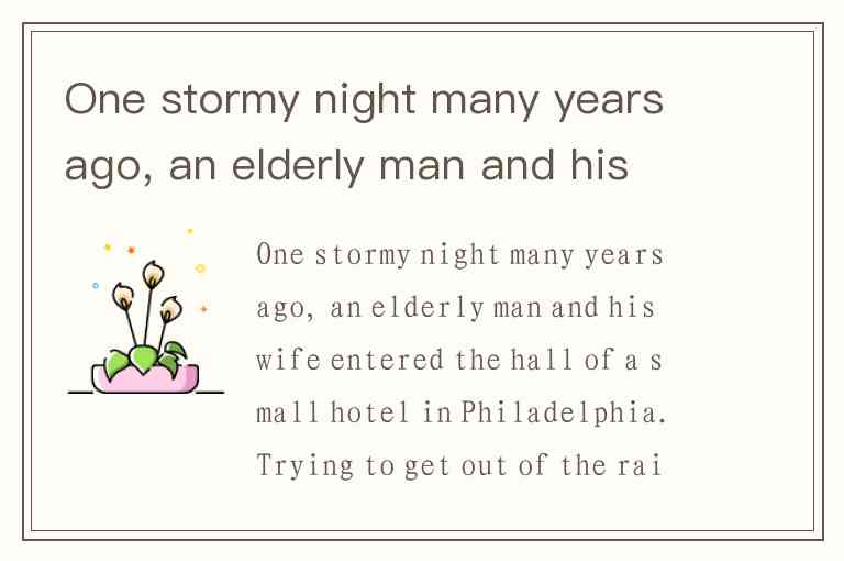 One stormy night many years ago, an elderly man and his wife entered the hall of a small hotel in Philadelphia. Trying to get out of the rain, they came the front desk hoping to get some shelter for the night. 'Could you possibly give us a room here?' the husband asked. The clerk, a friendly man with a winning smile, looked at the couple and explained that there were three conventions in town. 'All of our rooms are taken,' the clerk said. 'But I can't send a nice couple like you out into the rain at one o'clock in the morning. Would you perhaps be willing to sleep in my room? It's not exactly a suite, but it will be good enough to make you folks comfortable for the night.' When the couple declined, the young man pressed on. 'Don't worry about me; I'll make out just fine.' the clerk told them. So the couple agreed. As he paid his bill the next morning, the elderly man said to the clerk, 'You are the kind of manager who should be the boss of the best hotel in the United States. Maybe someday I'll build one for you.' The clerk looked at them and smiled. The three of them had a good laugh. As they drove away, the elderly couple agreed that the helpful clerk was indeed exceptional, as finding people who are both friendly and helpful isn't easy. Two years passed. The clerk had almost forgotten the incident when he received a letter from the old man. It recalled that stormy night and enclosed a roundtrip ticket to New York, asking the young man to pay them a visit. The old man met him in New York, and led him to the corner of Fifth Avenue and 34th street. He then pointed to a great new building there, a pale reddish stone, with turrets and watchtowers thrusting up to the sky. 'That,' said the older man, 'is the hotel I have just built for you to manage.' 'You must be joking,' the young man said. 'I can assure you I am not,' said the older man, a sly smile playing around his mouth. The older man's name was William Waldorf Astor, and that magnificent structure was the original Waldostoria Hotel. The young clerk who became its first manager was George C. Boldt. This young clerk never foresaw the turn of s that would lead him to become the manager of one of the world's most glamorous hotels. 1. The purpose of the following author writing this story is to________. A. give people a good laugh B. cover some facts C. promote the business of Waldostoria Hotel D. deliver a lesson 2. Which of the following statements about the story is NOT true ? A. The story took place at about one a. m. . B. The old couple was too poor to afford a luxurious room. C. The clerk was willing to help those in need. D. The clerk received an unexpected invitation from the old man. 3The underlined word 'conventions' in Para 3. can be replaced by________. A. rooms B. suites C. meetings D. hotels 4. Which of the following proverbs suits the story the best? A. Every little thing helps. B. Make hay while the sun shines. C. Man proposes; God disposes (处理, 决定). D. One good turn deserves another.