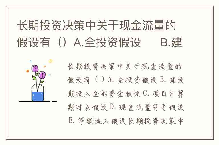 长期投资决策中关于现金流量的假设有()A.全投资假设 B.建设期投入全部资金假设 C.项目计算期时点假设 D.现金流量符号假设 E.等额流入假设