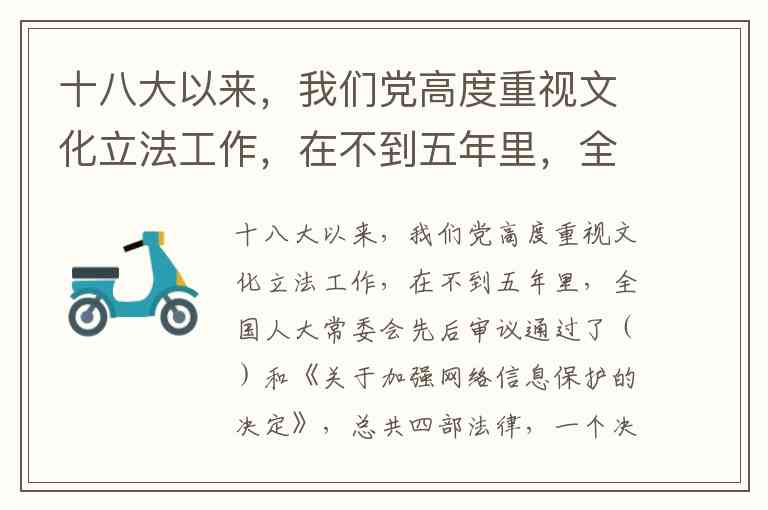 十八大以来,全国人大常委会在不到五年时间内审议通过了《网络安全法》《电影产业促进法》《公共文化服务保障法》《国歌法》4部法律及《关于加强网络信息保护的决定》1部决定,形成文化立法的密集成果期。其中,《网络安全法》构建网络空间安全保障体系,《电影产业促进法》推动文化产业市场化发展,《公共文化服务保障法》以法治手段保障公民文化权益,这三部法律均属题目选项范围。