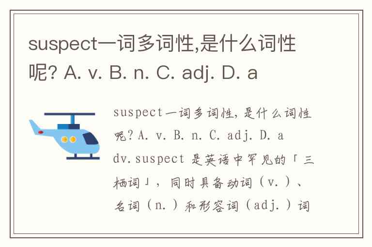 suspect一词多词性,是什么词性呢? A. v. B. n. C. adj. D. adv.