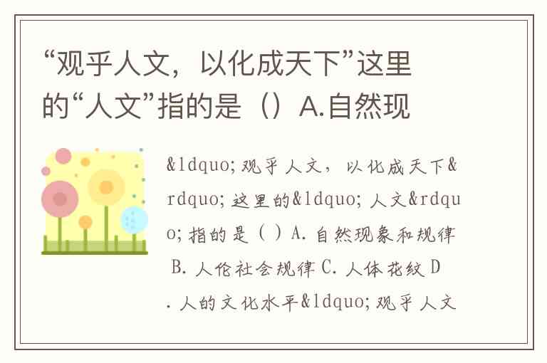 “观乎人文,以化成天下”这里的“人文”指的是()A.自然现象和规律 B.人伦社会规律 C.人体花纹 D.人的文化水平