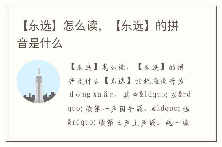 【东选】的标准读音为 dōng xuǎn,其中“东”读第一声阴平调,“选”读第三声上声调。这一读音在多份权威资料中得到一致确认,包括拼音标注 dōng xuǎn 和注音符号 ㄉㄨㄥ ㄒㄨㄢˇ 。作为非多音字组合,“东”(dōng)表方位或主人,“选”(xuǎn)意为挑选,二者发音固定无歧义。需注意区分“东”(dōng)与形似字“冬”在中古汉语曾有的韵部差异,但在现代汉语普通话中二者已同音。