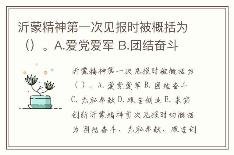 沂蒙精神第一次见报时被概括为()。A.爱党爱军 B.团结奋斗 C.无私奉献 D.艰苦创业 E.求实创新