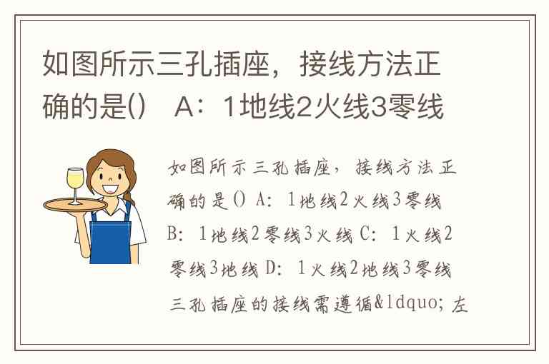 具体到选项中,若题目所述“1、2、3”的编号对应上、左、右三个孔位(符合常规插座布局描述),则正确接线应为:1地线、2零线、3火线。这一结论同时得到“左零右火”原则和孔位编号对应关系的双重验证,确保了用电安全规范,可有效避免设备漏电导致的触电风险。