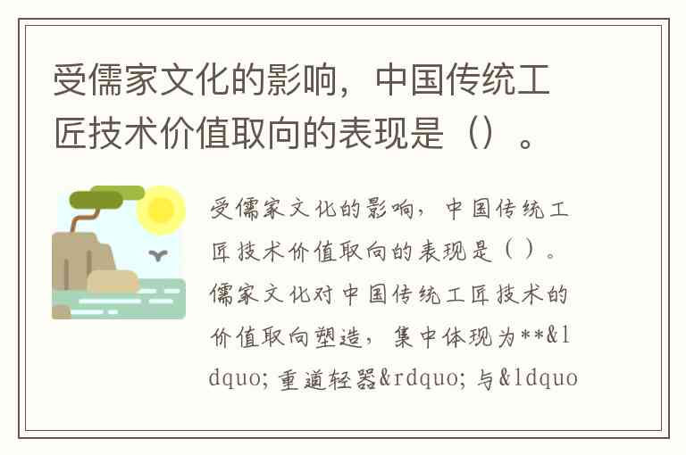 受儒家文化的影响,中国传统工匠技术价值取向的表现是()。