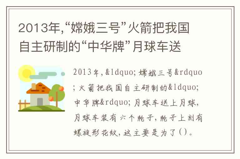 2013年,“嫦娥三号”火箭把我国自主研制的“中华牌”月球车送上月球,月球车装有六个轮子,轮子上刻有螺旋形花纹,这主要是为了( )。 A. 增大摩擦 B. 减少摩擦 C. 美观