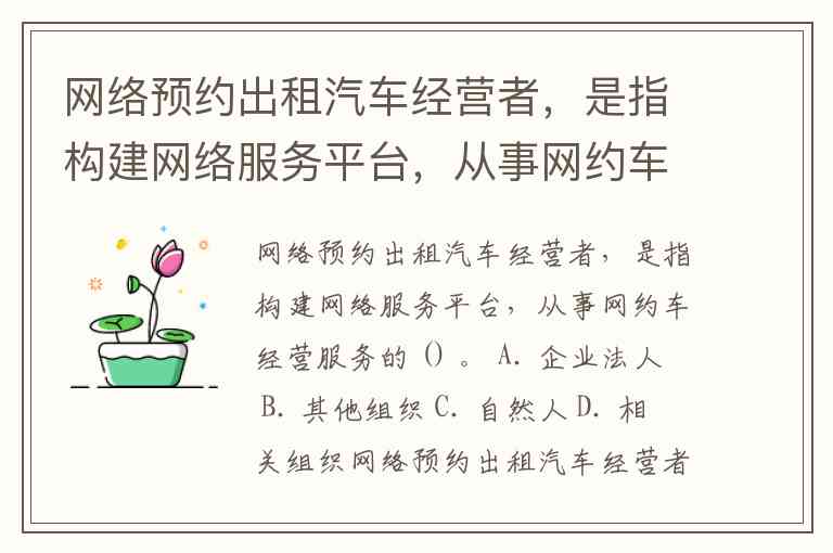 网络预约出租汽车经营者,是指构建网络服务平台,从事网约车经营服务的 () 。 A. 企业法人 B. 其他组织 C. 自然人 D. 相关组织