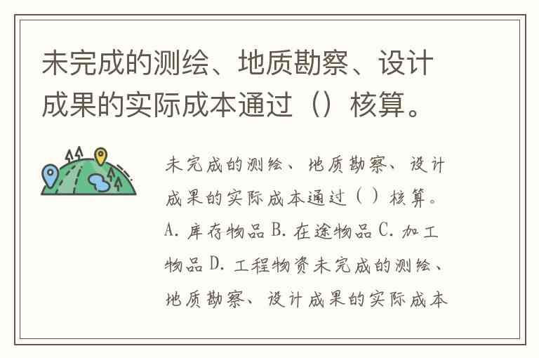 未完成的测绘、地质勘察、设计成果的实际成本通过()核算。A.库存物品 B.在途物品 C.加工物品 D.工程物资