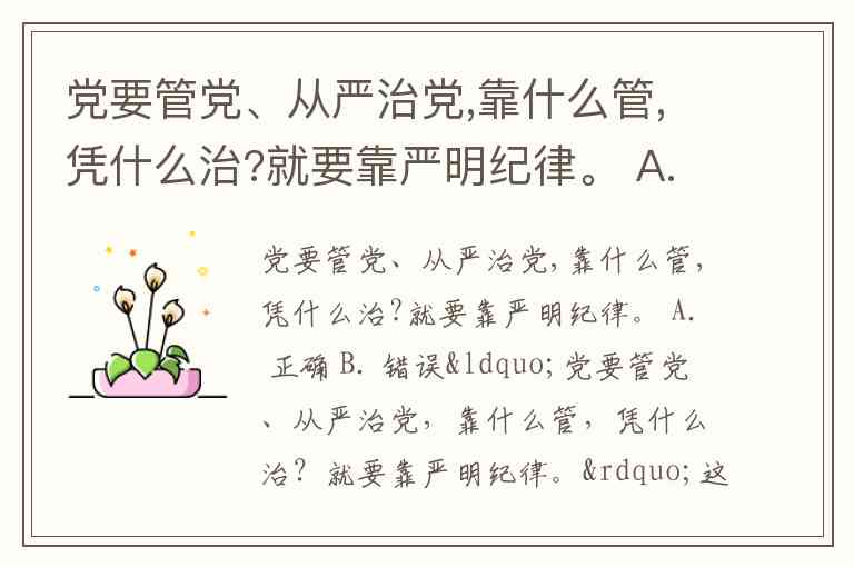 党要管党、从严治党,靠什么管,凭什么治?就要靠严明纪律。 A. 正确 B. 错误