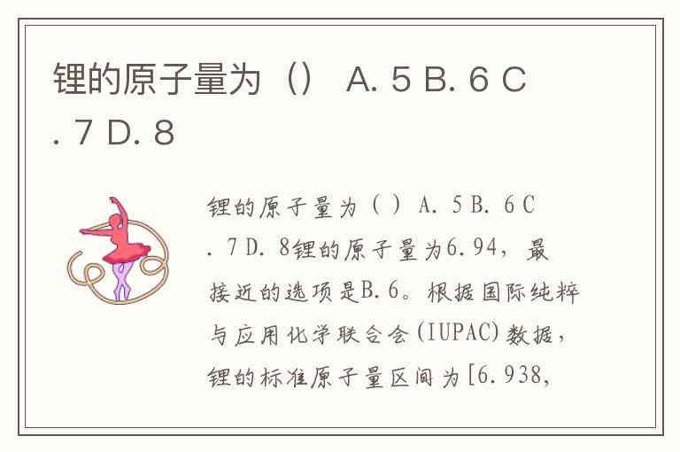 锂的原子量为() A. 5 B. 6 C. 7 D. 8