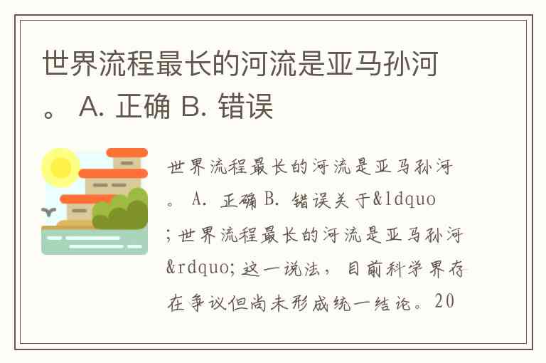 世界流程最长的河流是亚马孙河。 A. 正确 B. 错误