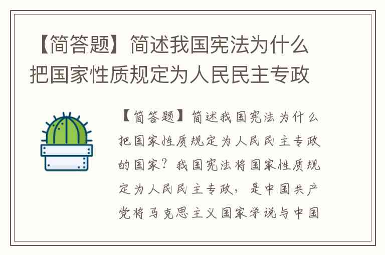 【简答题】简述我国宪法为什么把国家性质规定为人民民主专政的国家?