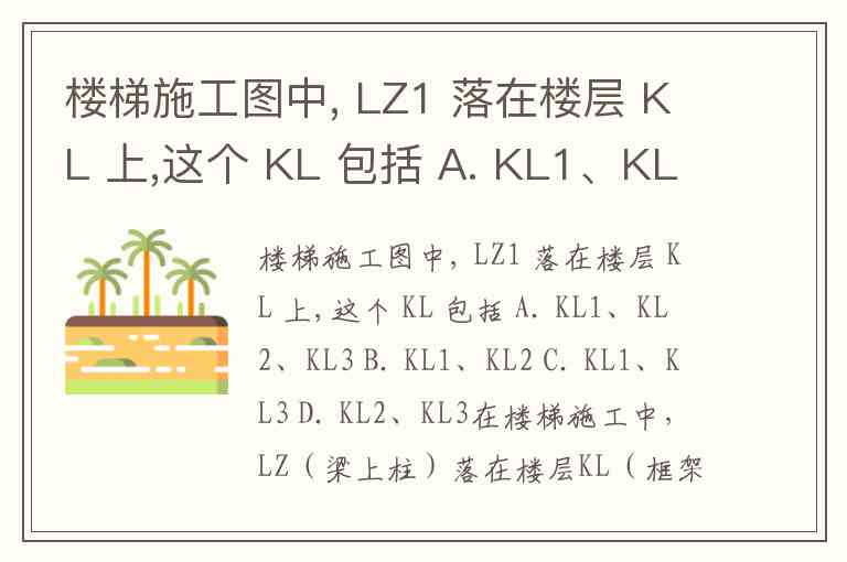 楼梯施工图中, LZ1 落在楼层 KL 上,这个 KL 包括 A. KL1、KL2、KL3 B. KL1、KL2 C. KL1、KL3 D. KL2、KL3
