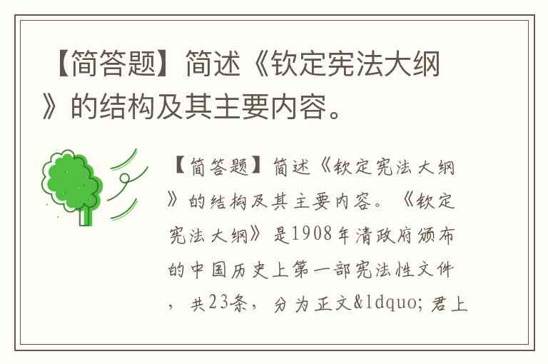 【简答题】简述《钦定宪法大纲》的结构及其主要内容。