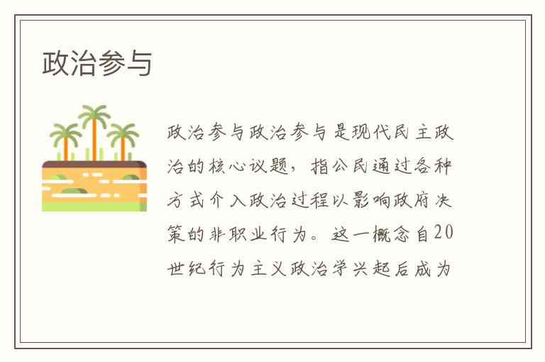 政治参与是现代民主政治的核心议题,指公民通过各种方式介入政治过程以影响政府决策的非职业行为。这一概念自20世纪行为主义政治学兴起后成为研究热点,但其内涵始终存在争议——从帕特里克·J·孔奇提出的六大争论焦点,到亨廷顿强调的"平民试图影响政府决策",学界对主体范围、行为合法性、参与意图等核心问题尚未形成共识。在中国语境下,政治参与既包含人大代表选举、信访等制度化渠道,也涵盖基层群众自治、网络议政等新兴形式,正经历从动员型参与向自主型参与的深刻转型。