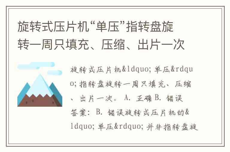 旋转式压片机“单压”指转盘旋转一周只填充、压缩、出片一次。 A. 正确 B. 错误
